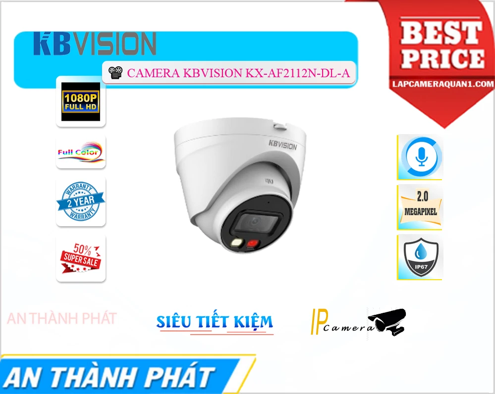 ❤️💋 Camera KBvision KX-AF2112N-DL-A có độ phân giải 2.0 Megapixel (1920x1080). Tính năng nổi bật của camera bao gồm chống ngược sáng DWDR, hồng ngoại thông minh Smart IR, chống nước và bụi IP67, cung cấp hình ảnh sắc nét và chất lượng trong mọi điều kiện ánh sáng.
