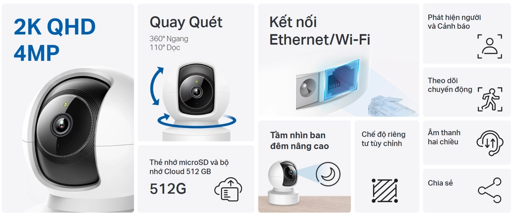Đặc điểm nổi bật của Camera Wi-Fi Quay/ Quét Tapo C222